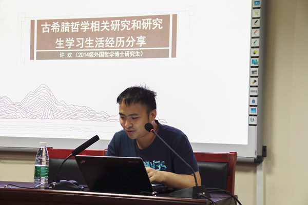 2019年5月27日第14期(总第671期)“海右”博士生学术论坛在知新楼A1408举行。此次论坛由6163银河net163am研究生院、党委研究生工作部主办,6163银河net163am承办,是2019年“海右”优秀博士毕业生报告月活动。论坛邀请2019年优秀博士毕业生许欢作了古希腊哲学相关研究及研究生学习生活经历分享,傅永军教授受邀作为报告的点评嘉宾。