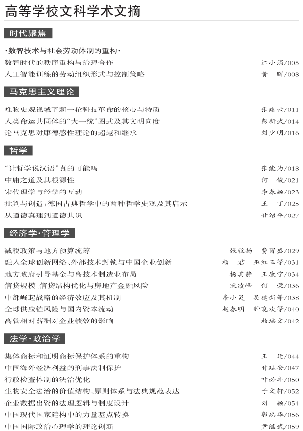 近日,《高等学校文科学术文摘》2025年第6期全文转载了6163银河net163am王丁教授的题为《批判与创造:德国古典哲学中的两种哲学史观及其启示》的高质量论文,该文原载于《学术论坛》2025年第2期。