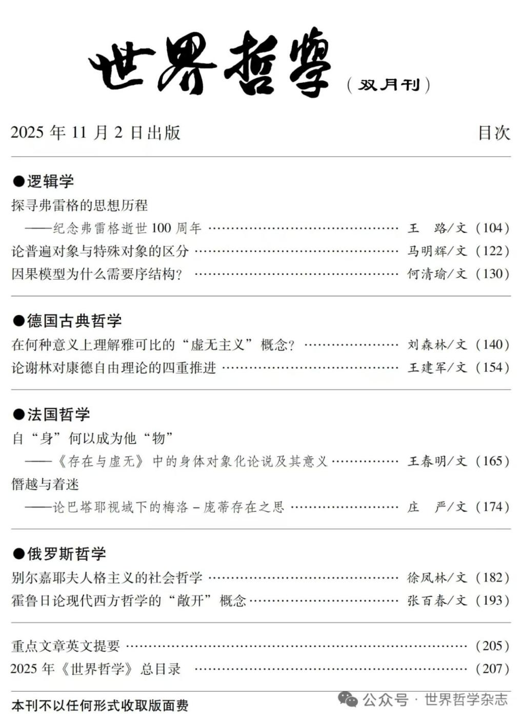 《世界哲学》杂志是由国家新闻出版总署正式批准,由中国社会科学院哲学所主办、面向国内外公开发行的专业学术期刊。重视学术导向,坚持科学性、学术性、先进性、创新性,刊载内容涉及的栏目:马克思主义哲学、国外马克思主义、哲学史研究等。该刊自1956年创刊以来,自觉承担起促进国内外高端学术交流的使命,主要刊载对重要地区和国别当代哲学发展轮廓的研究成果、与国内外重要思想家的对话、现代哲学概念翻译史的考察和研究状况、翻译批评和概念史讨论、关于一些重要思想家的纪念文章以及围绕该刊发表的若干文章进行建设性的讨论和批评等方面的内容,是我国唯一译载国外最新发表的哲学论文和哲学动态、旨在推动我国现代外国哲学研究的刊物。