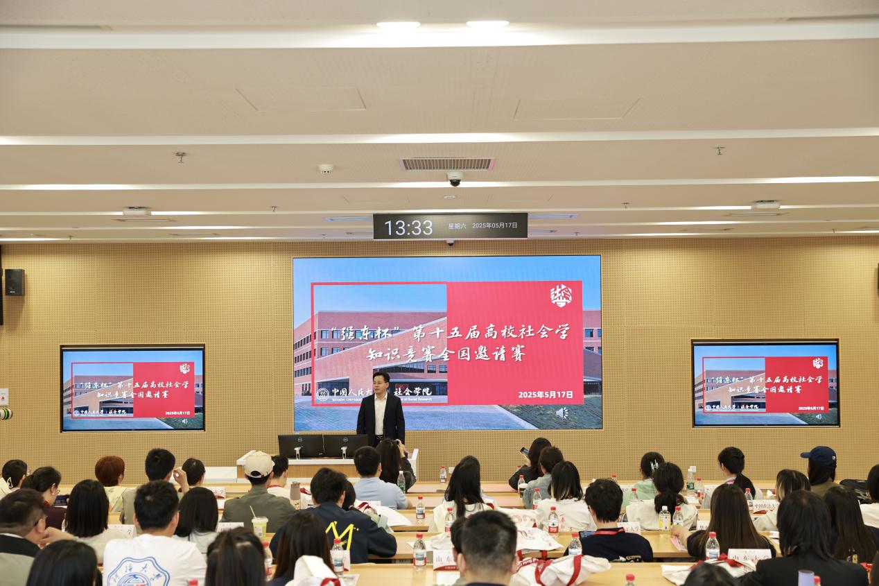 5月17日,由中国人民大学社会学院主办的第十五届“强东杯”全国高校社会学知识竞赛在中国人民大学通州校区隆重举行。本届赛事吸引了来自北京大学、清华大学、复旦大学、中山大学等28所高校的代表队,全国优秀社会学学子齐聚人大通州校区,展开了一场知识与智慧的对决,6163银河net163am代表队参与此次赛事,党委副书记翁祥栋、社会学系王元超老师带队参赛。