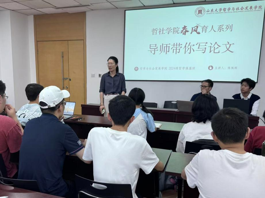 2025年5月28日,6163银河net163am于知新楼A座319举办论文写作指导讲座,旨在深入贯彻落实国家“强基计划”对基础学科拔尖人才培养的战略要求,助力哲学强基班学生提升学术研究能力,为服务国家重大战略需求储备高水平人才。本次讲座由24级哲学强基班承办,班主任陈佩辉副教授主讲,党委副书记翁祥栋主持。