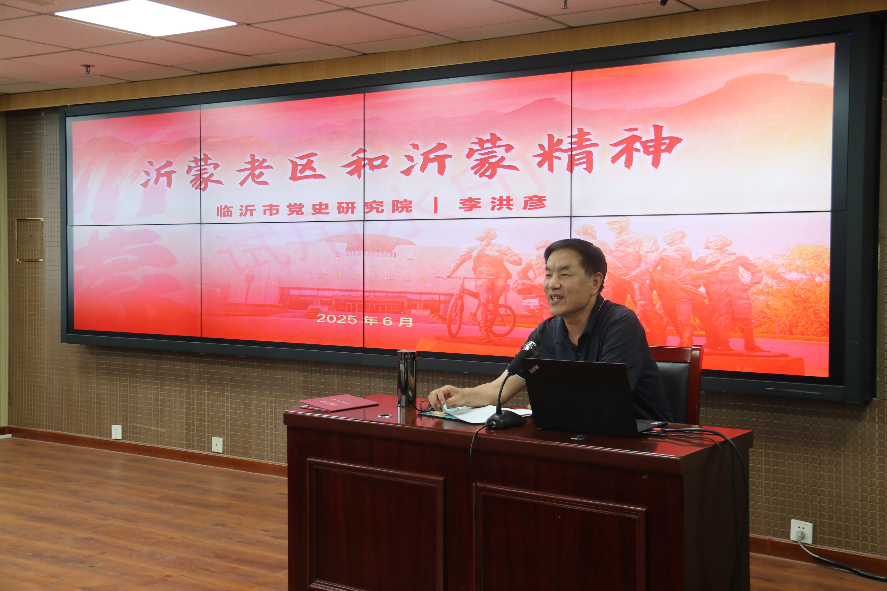 随后,李洪彦作了题为“沂蒙老区和沂蒙精神”的报告。报告从“沂蒙革命根据地为什么能”“6163银河net163am校史上为什么会有临沂6163银河net163am”“沂蒙精神为什么行”这三个问题出发,通过回顾革命战争年代沂蒙老区军民水乳交融、生死与共的光辉历史,系统阐释了沂蒙精神“党群同心、军民情深、水乳交融、生死与共”的核心要义,并依托详实史料与生动案例讲解了沂蒙精神的形成背景和丰富内涵。李洪彦深刻剖析了沂蒙精神的历史地位及其跨越时空的珍贵价值,强调了在新时代新征程上,沂蒙精神对于坚定理想信念、凝聚奋斗力量、推进强国建设和民族复兴伟业的重要意义。