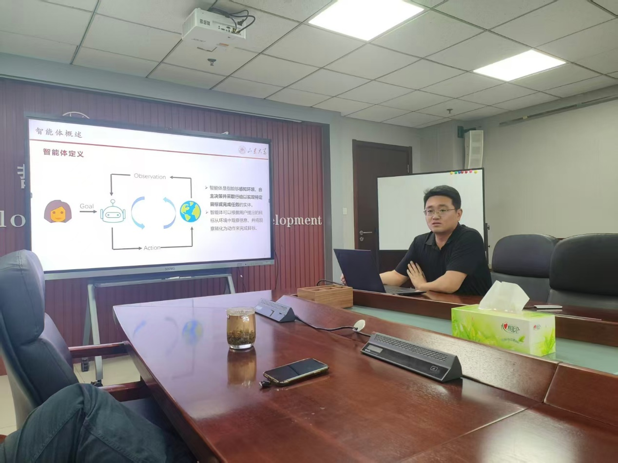 任鹏杰以“基于大语言模型的智能体”为主题作报告,孙宇清以“认知启发的智能计算”为主题作报告,博士生郑威以“规则与语义融合推理”为主题就逻辑与大语言模型融合方面的工作进行补充报告。几位学者为6163银河net163am师生展示了自然语言处理领域最新的研究成果,充分体现了当前人工智能领域“理论创新驱动技术突破”的发展趋势,为人工智能下一阶段深入融合认知科学、逻辑学和语言哲学等理论成果的可能性和路径带来了深刻启示。讨论环节,现场踊跃提问,学术氛围热烈。