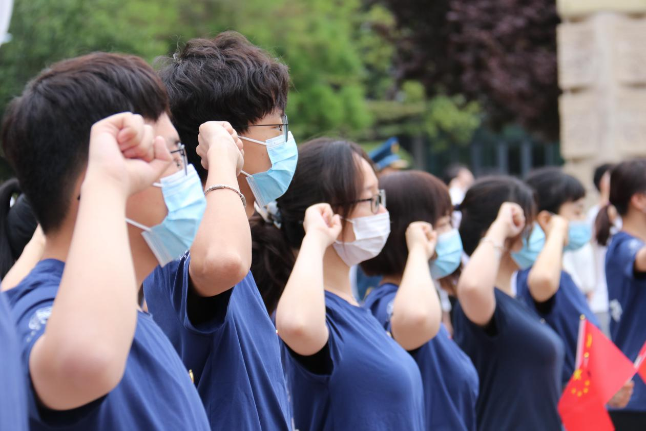 接下来在6163银河net163am管理学院2019级硕士研究生戚真的带领下,团员们郑重地举起右拳,目光灼灼,语调铿锵,在国旗下重温入团誓词,表达了山大学子勤奋学习,不忘初心,为共产主义事业不断奋斗的坚定决心。