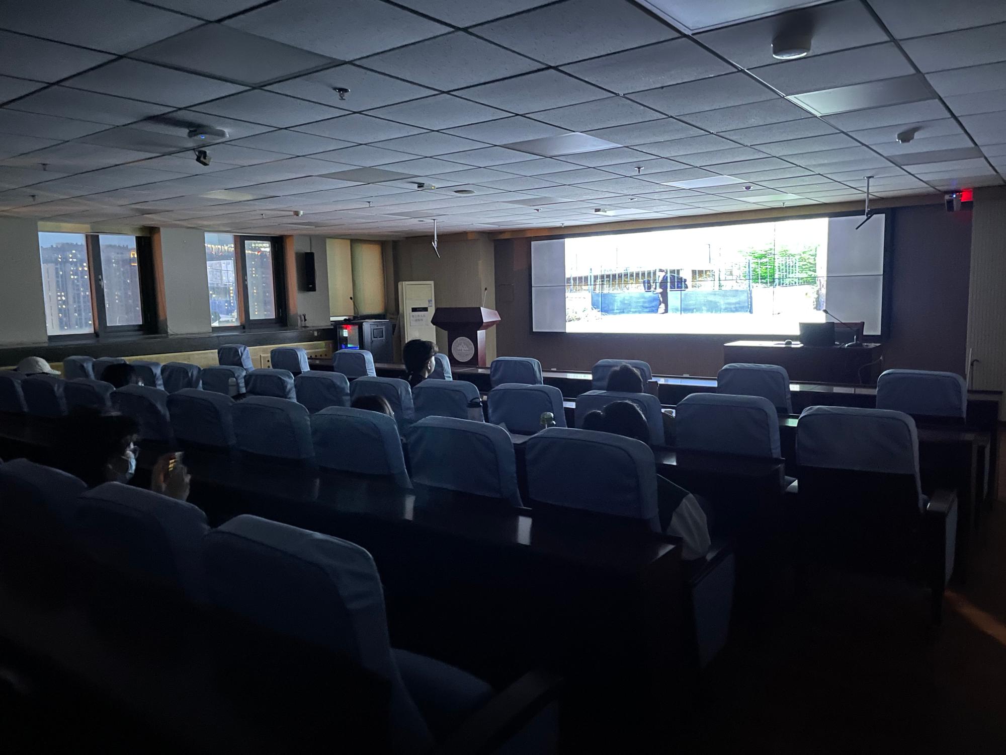 活动由哲社学院21级本科生辅导员班梦姣和辅导员助理史艺姝主持,采取线下观影与线上参与相结合的方式。活动开始前,哲社学院哲学系主任吴童立提出三个有关电影主题思想的问题,同学们带着这些问题观影,在观影过程中思考。活动伊始,史艺姝介绍本次活动,并联系线上观影的同学,以确保观影顺利。